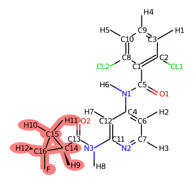 Now - this is a case where you may want to modify the atom mapping, for instance if you want to enhance sample the dihedral leading into the ring system. To do that - you need to know the atom indices of the atoms you want to modify.