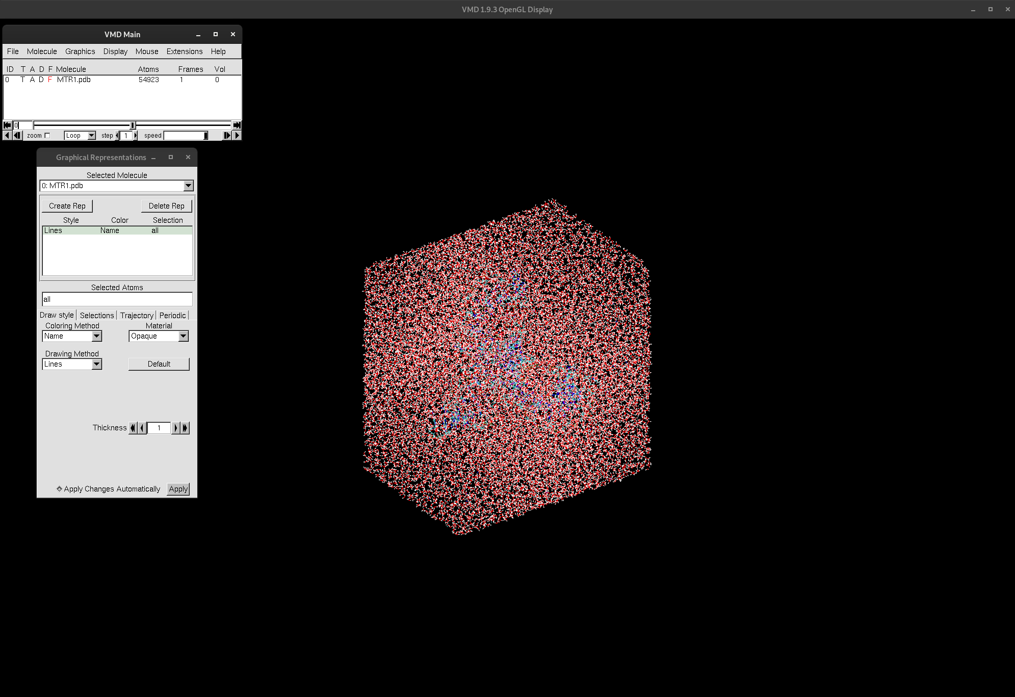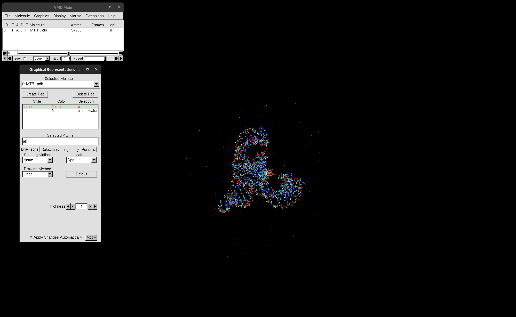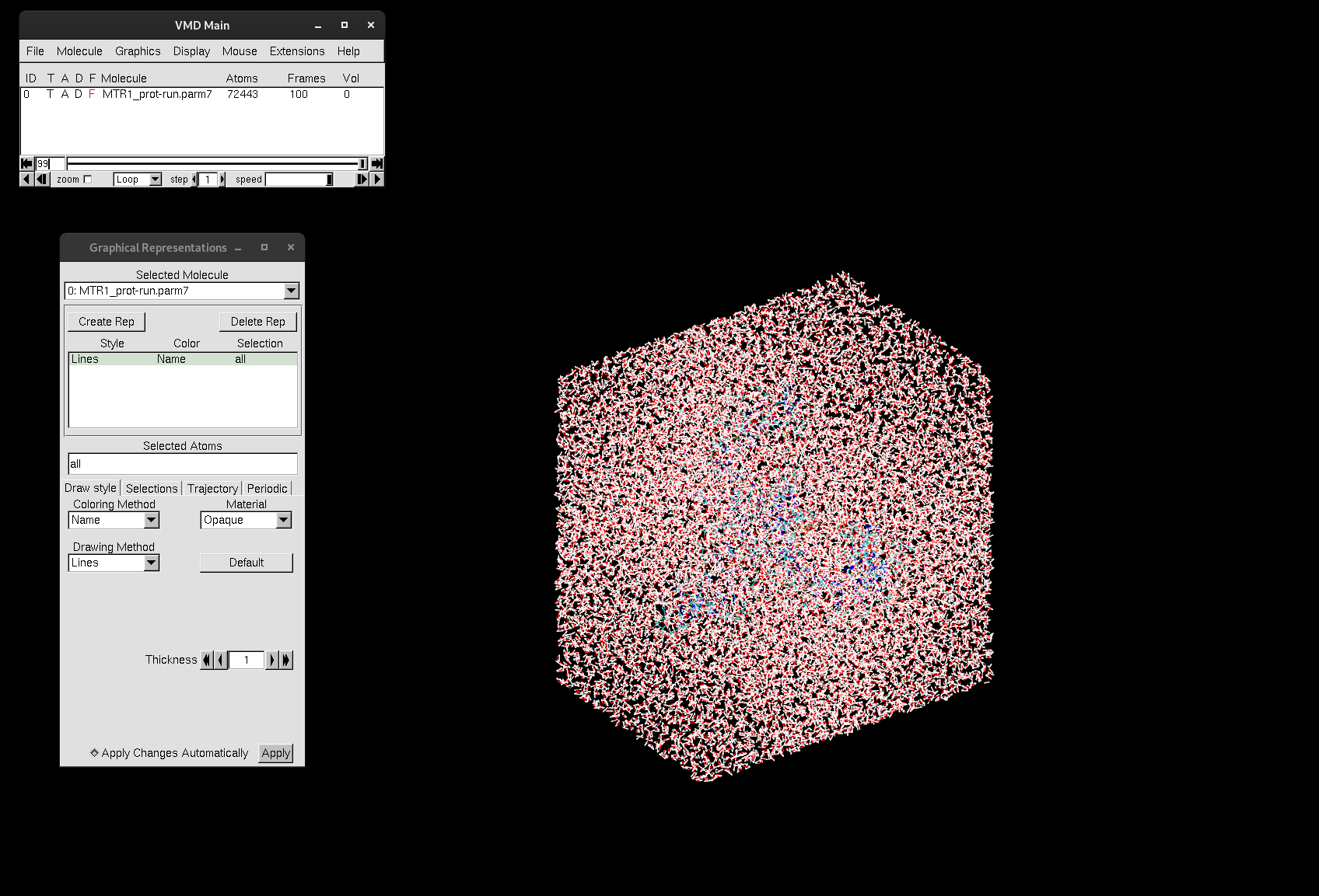 Figure 7. Trajectory file of MTR1 loaded into VMD.