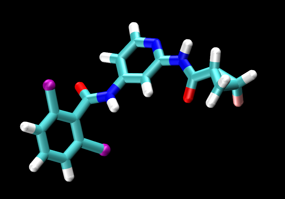 Visually inspect the three ligands. You should see that they are all the same except for the tail end of the ligand, where jmc_23 has CHANGE, ejm_44 has CHANGE and ejm_55 has CHANGE.