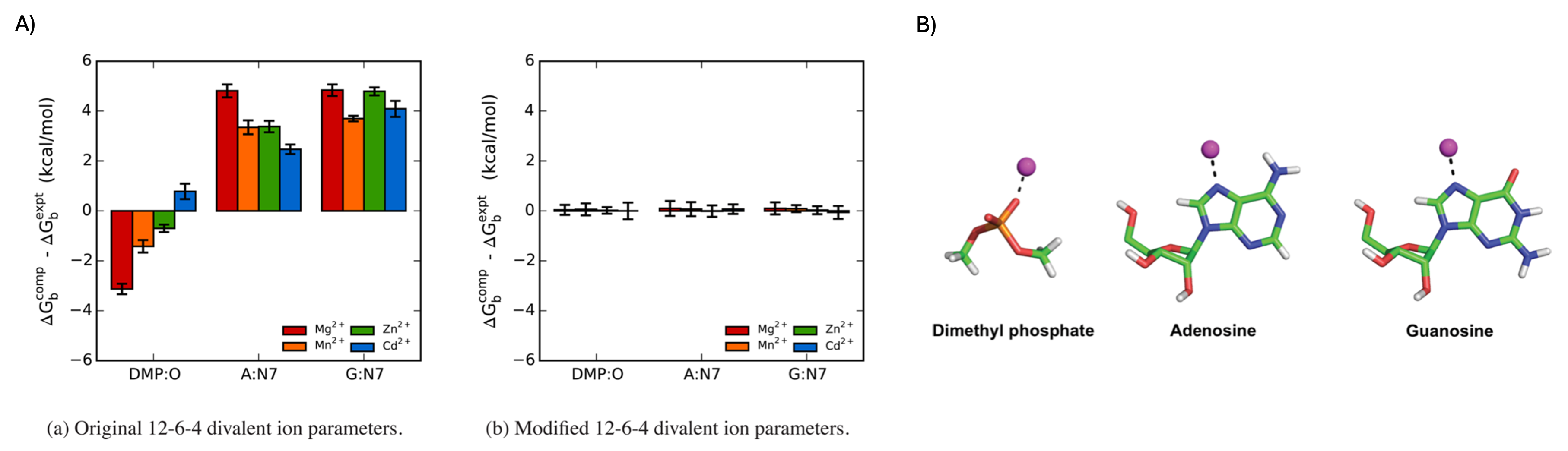 Panteva, M., Giambasu, G., and York, D. M. Force Field for Mg2+, Mn2+, Zn2+, and Cd2+ Ions That Have Balanced Interactions with Nucleic Acids. J. Phys. Chem. B 2015, 119(50), 15460-15470. https://doi.org/10.1021/acs.jpcb.5b10423